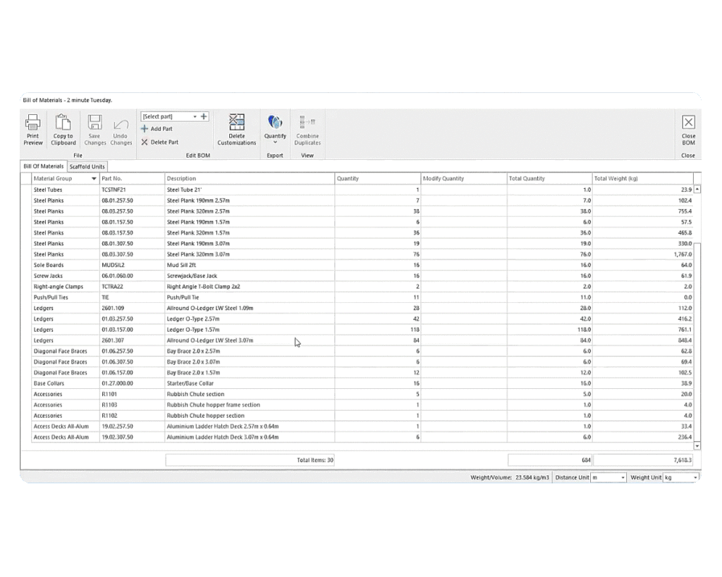 With Avontus Designer, you’ll never have to manually count parts or use separate scaffold estimating software to create an accurate material list of your scaffold design.