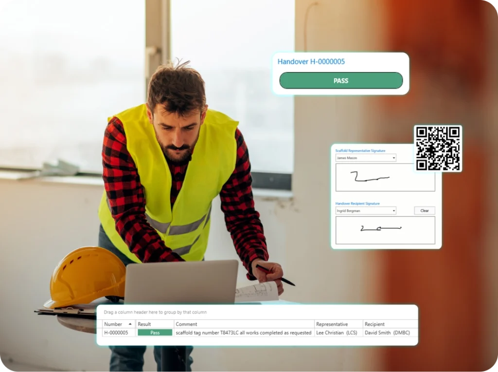 Scaffolders and trades can quickly sign handovers on a mobile device after every scaffold build or modification. A running log shows accountability.